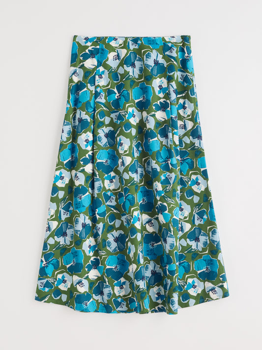 Swallow Hill Printed A-Line Skirt Floral Cutout Glade Paper Hellebores Forest Green