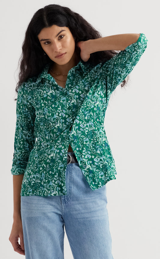 Swallow Hill Printed A-Line Skirt Floral Cutout Glade Paper Hellebores Forest Green