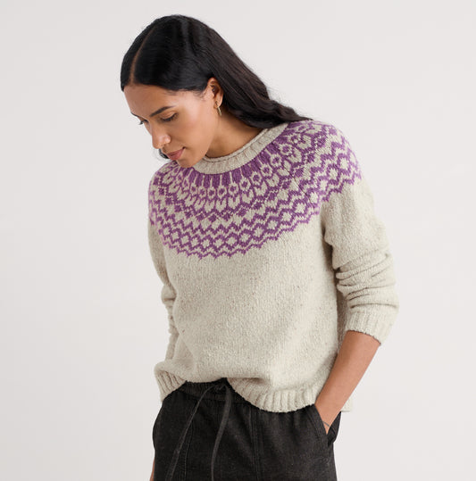 Port Kinnis Fair Isle Jumper Wag Tail Aran Spring Heather