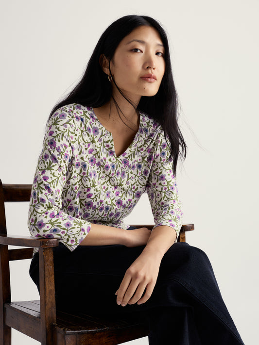 Kellow 3/4 Sleeve Jersey Top Blotted Anemone Chalk
