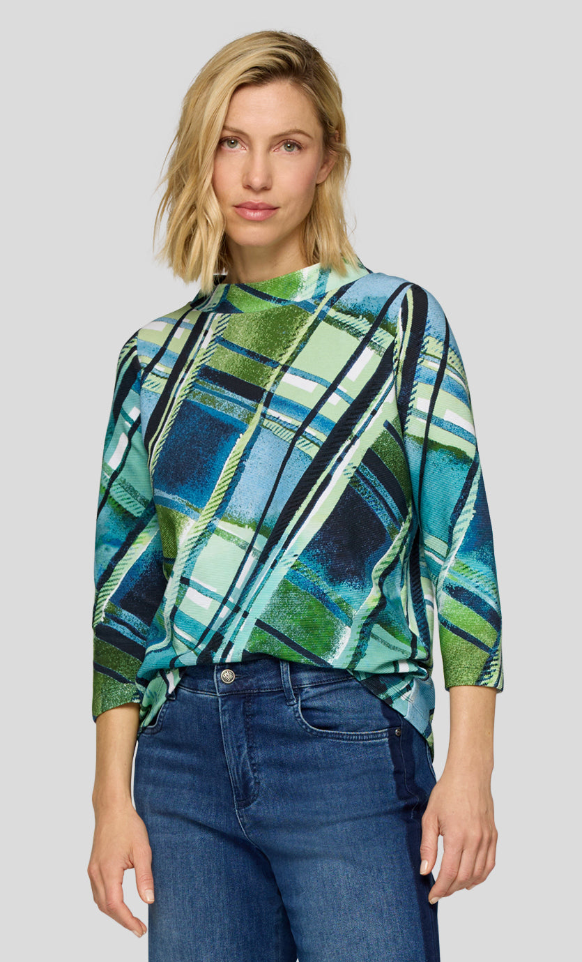 3/4 SLV CHECK TOP 76% COTTON 16% POLYESTER 8% ELASTANE