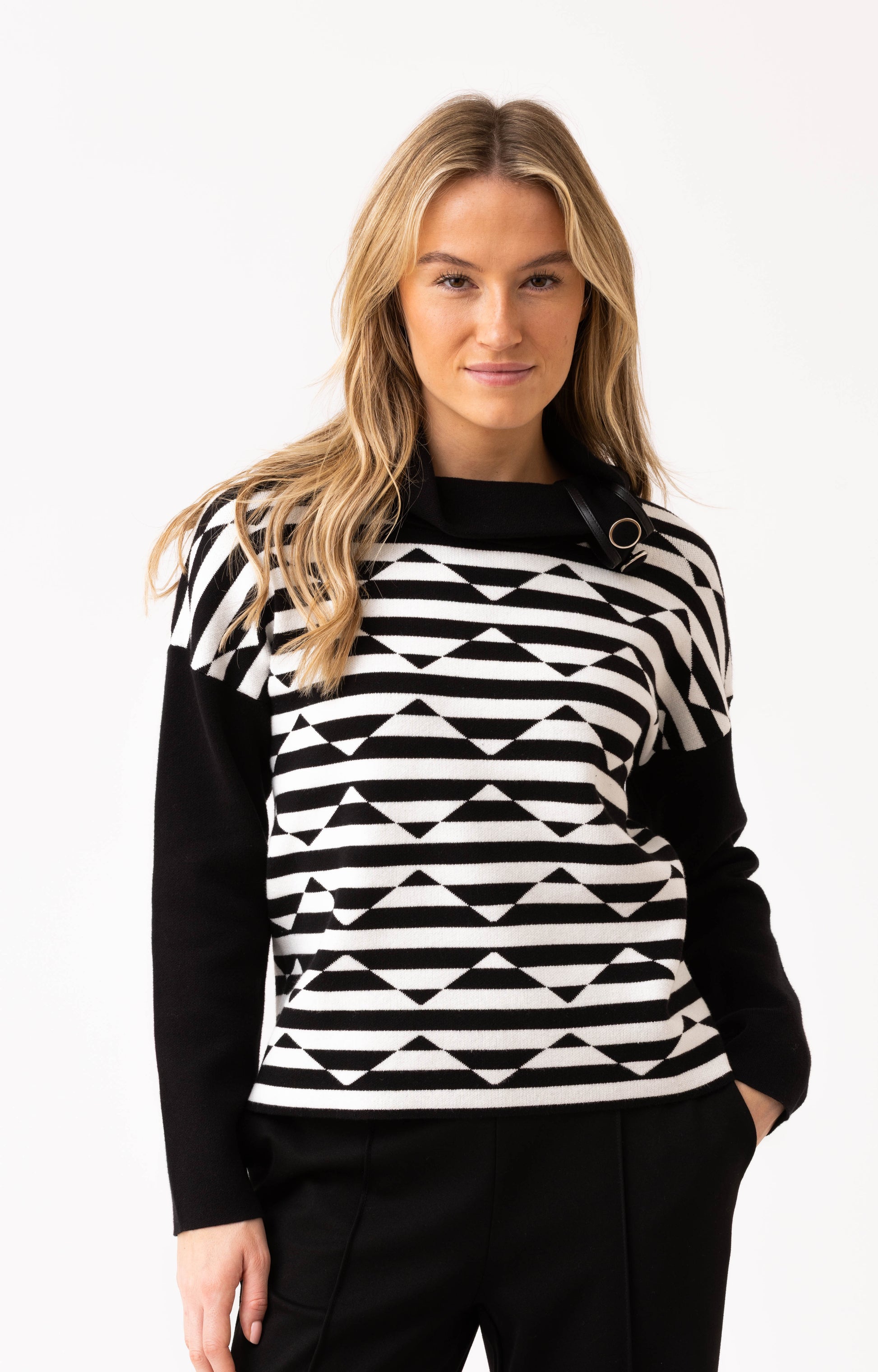 covered button attached68% COTTON 32% POLYAMIDE BLK/WHITE JUMPER