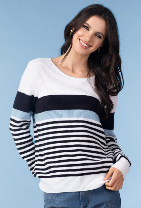 STRIPED WHITE/ BLUE JUMPER 60% COTTON 40% ACRYLIC