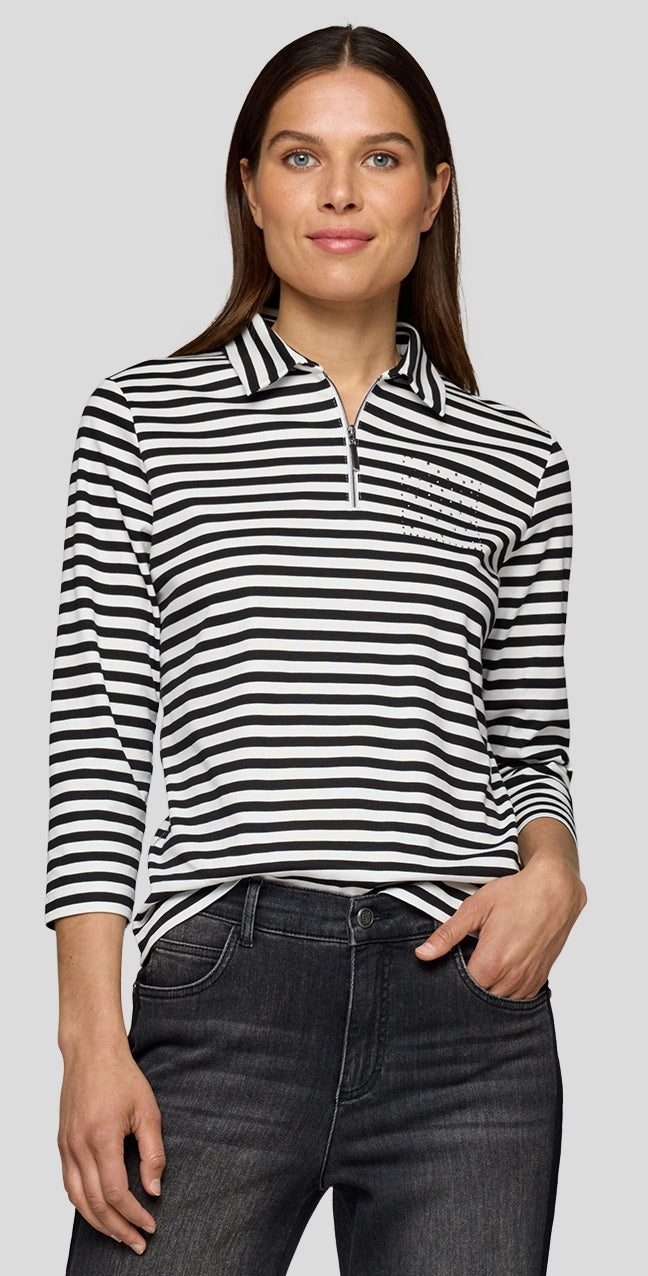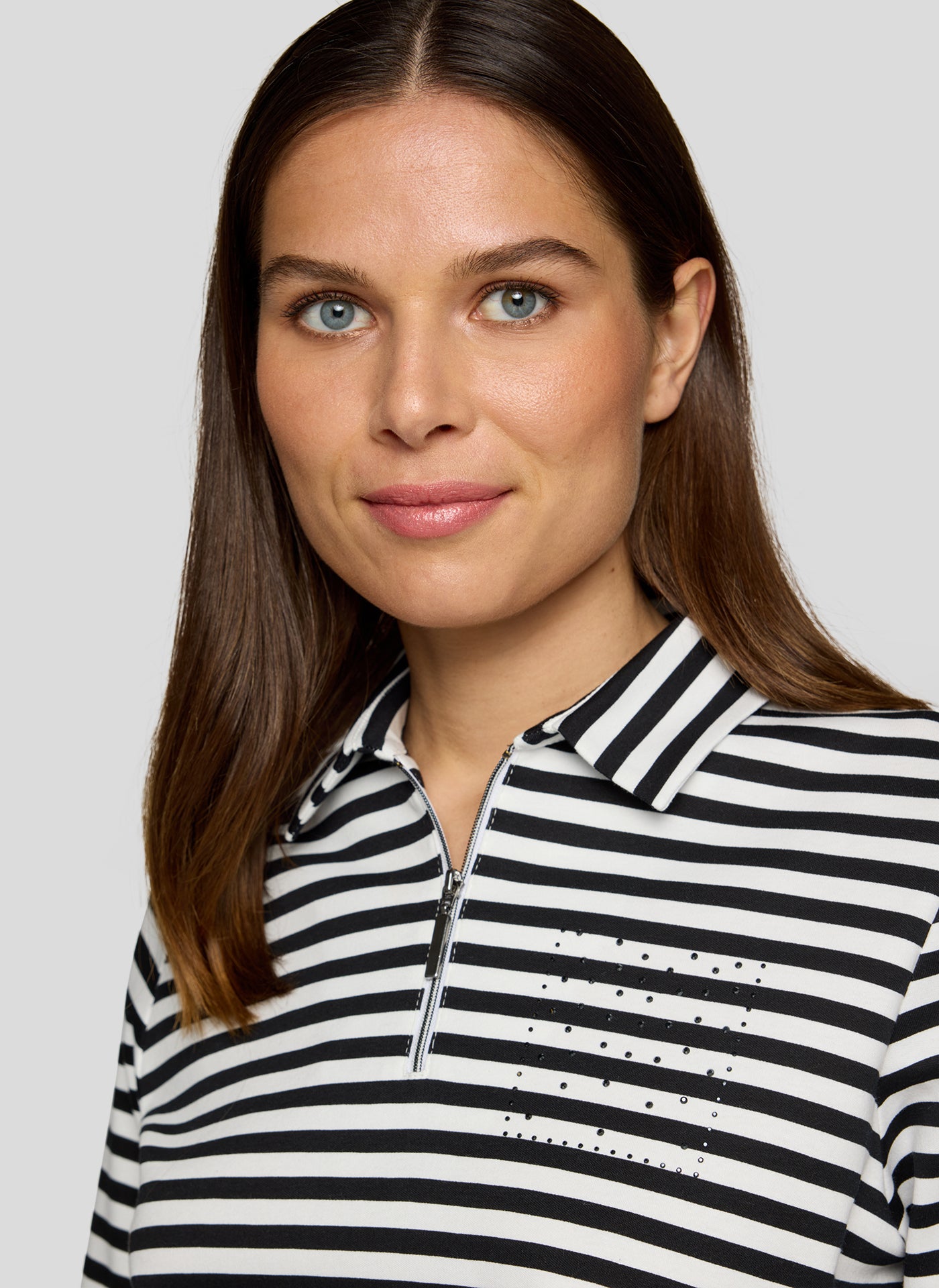 WHITE / BLACK STRIPED 1/2 ZIP TOP WITH COLLAR 100% COTTON