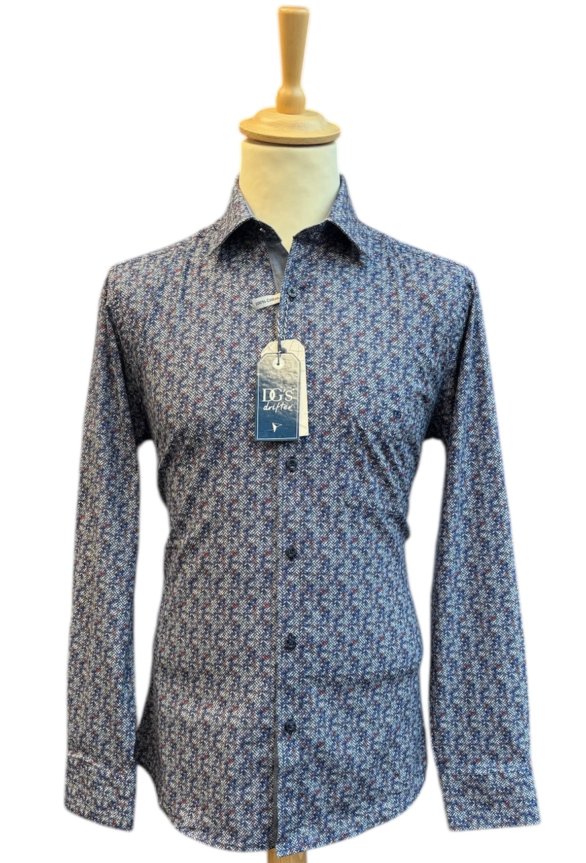 WHITE NAVY PRINTED COTTON MIX SHIRT