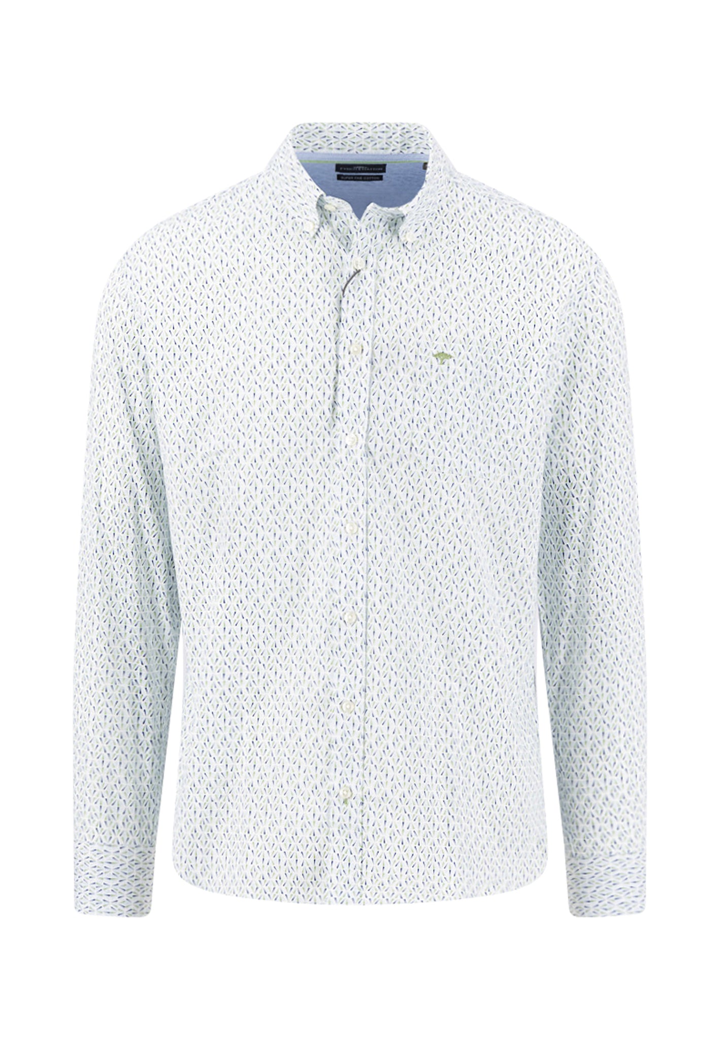 WHITE LIME BLUE PRINTED SHIRT 100% COTTON